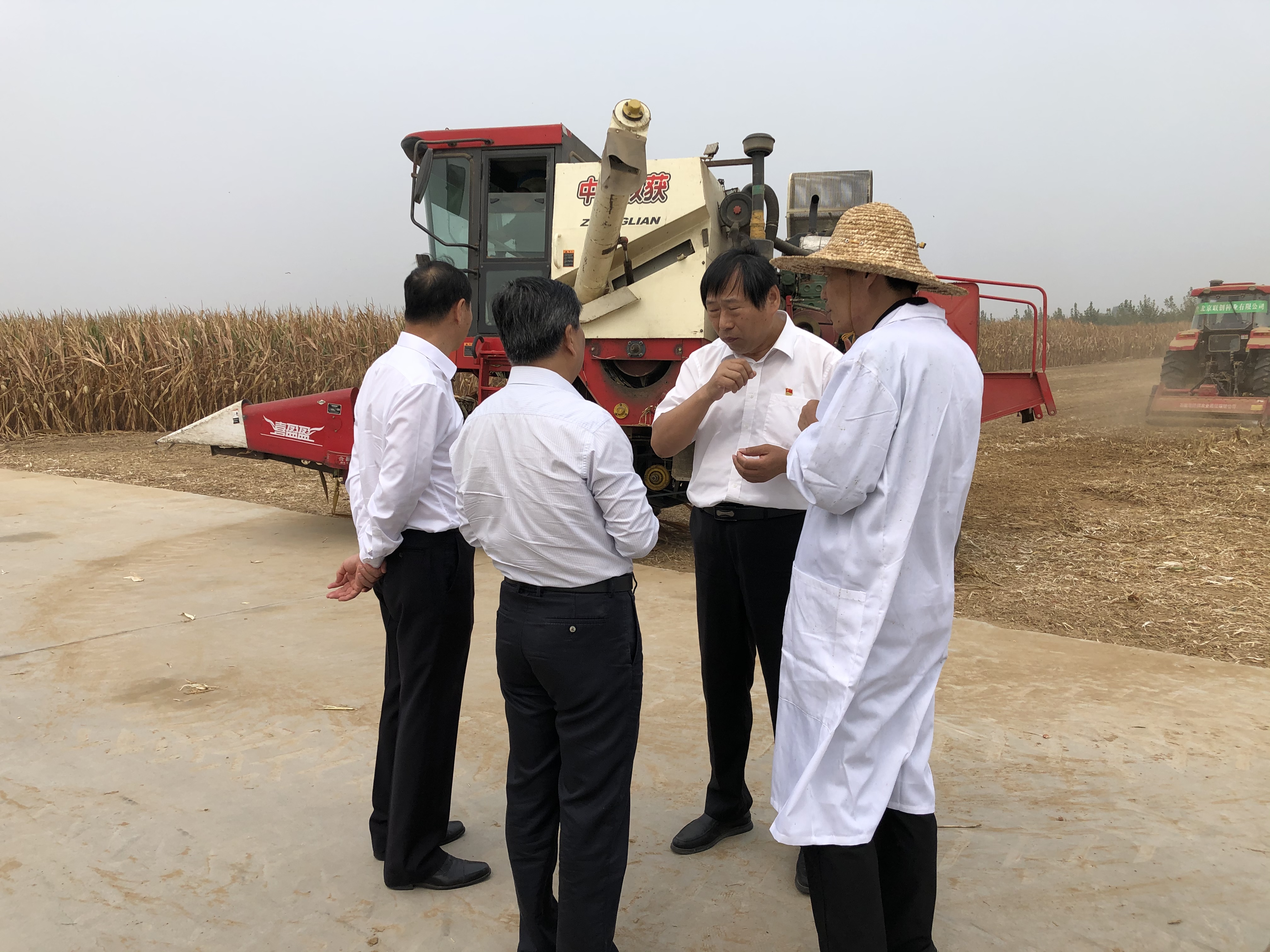 王義波董事長陪同武國定副省長一行深入田間觀看了玉米籽粒機收、秸稈還田等秋收現場,并向副省長匯報了當前“三秋”生產工作開展情況。期間武國定副省長及各位領導親自到試驗地里查看了玉米長勢,掰下成熟的玉米果穗和王義波進行了現場交流,并蹲在地里撥開粉碎后的玉米秸稈查看秸稈還田情況,對聯創種業的各項工作開展情況給與了充分肯定。